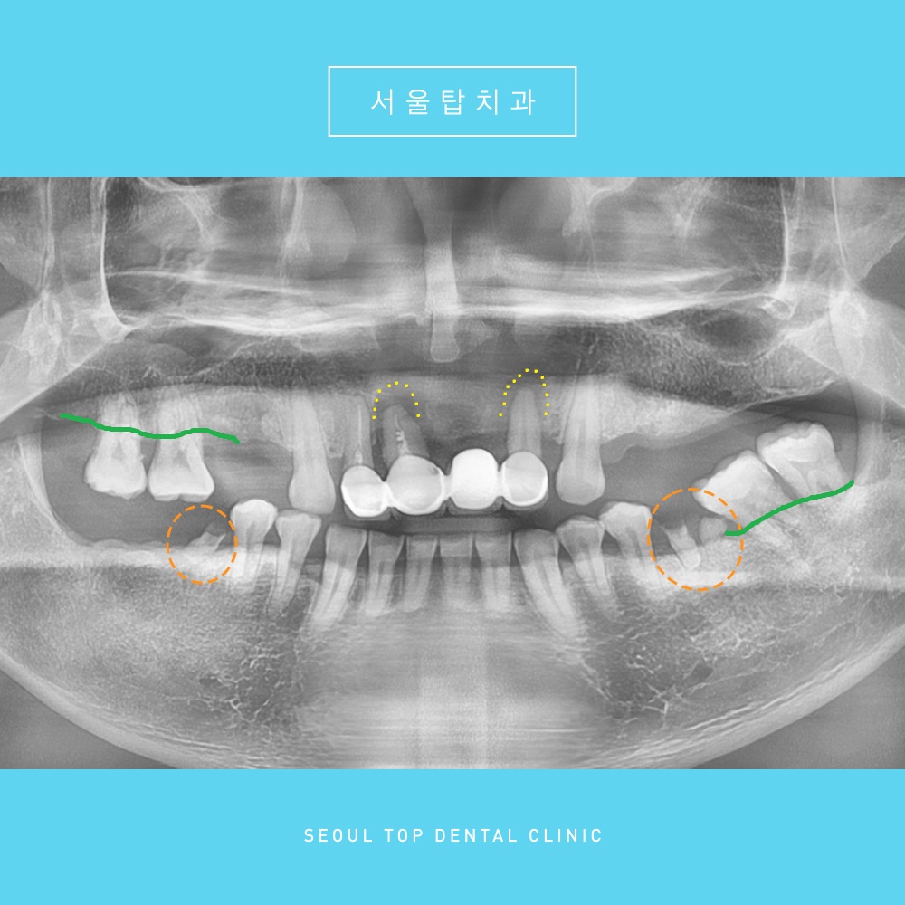 초록색 선을 보시면 남아있는 큰 어금니들도